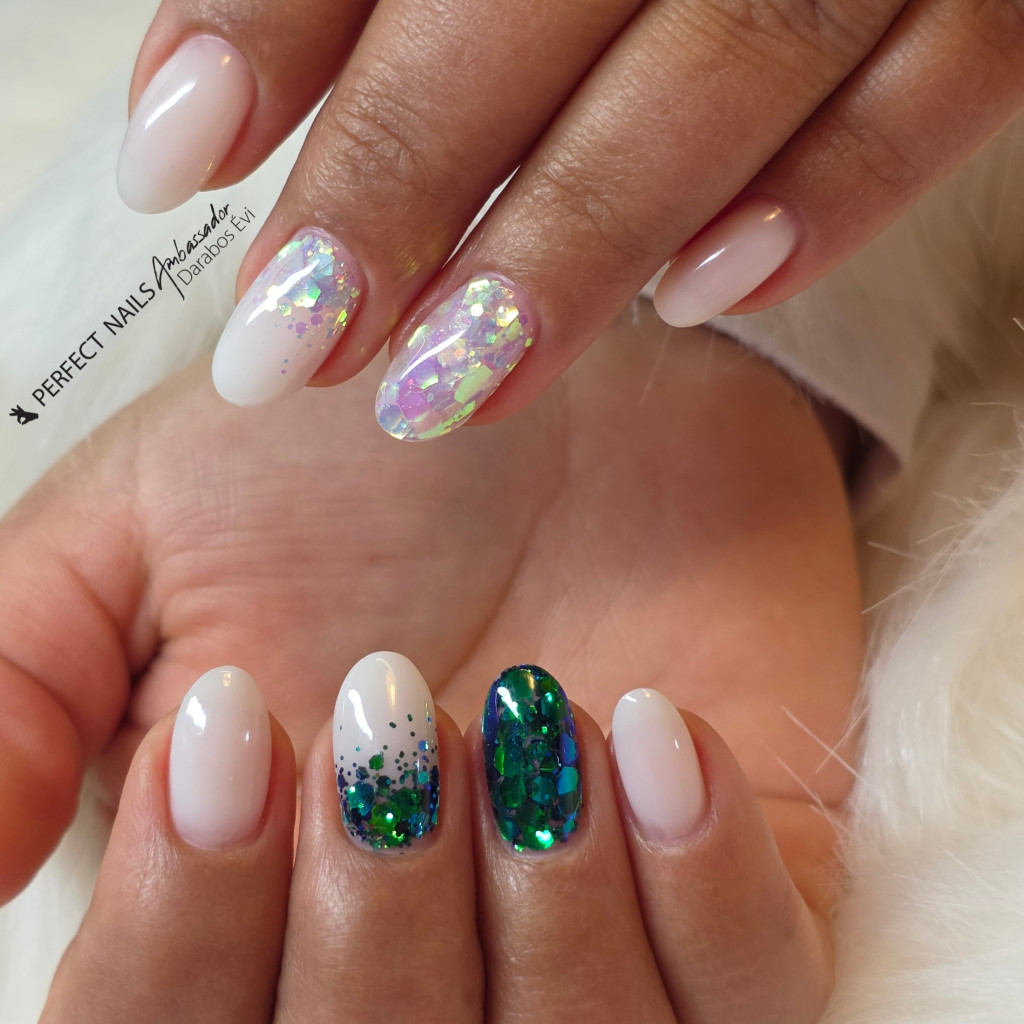 - Beépítve: Keverjük a MultiSize Glittert clear zselébe vagy porcelánba, alakítsuk ki a teljes körmöt vagy használjuk csak francia véghez. Ha szükséges fedjük még egy réteg anyaggal.